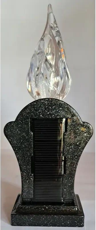 Znicz solarny wykonany z trwałego plastiku imitującego kamień, lampka imituje tradycyjny płomień. Z tyłu został umieszczony panel solarny, dzięki czemu ładuje się automatycznie w ciągu dnia i świeci po zmroku bez potrzeby wymiany baterii czy wkładów. Znicz posiada realistyczny płomień LED w kształcie ognia, który emituje, migoczące światło. Elegancki wystrój z krzyżem na froncie sprawia, że doskonale nadaje się do upamiętnienia bliskich. Pojemne akumulatorki zapewniają działanie znicza przez całą noc nawet w pochmurne dni. Po włączeniu lampki diody zapalają się w sposób imitujący rzeczywisty płomień świecy. Parametry znicza: Wysokość: 17 cm Szerokość: 6,5 cm Głębokość: 4,5 cm przełącznik on/off Materiał: plastik Zasilanie: panel solarny (wbudowany) Kolor obudowy: czarny z ozdobnym złotym krzyżem Światło: imitujące płomień Zalety: działa automatycznie – ładuje się w dzień, świeci nocą, bezpieczny i ekologiczny (bez ognia, bez baterii, bez wkładów), odporny na warunki atmosferyczne, elegancki wygląd.