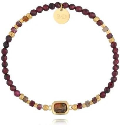 Bransoletka By Dziubeka BSC2183 z kamieniami. Surowiec: stal szlachetna, Kolor surowca: złoty. Elementy: granaty, turmaliny, rodochrozyt. Wielkość elementów: 0,30 cm ; 0,32 cm. Średnica bransoletki: 5,30 cm bez rozciągania gumki.