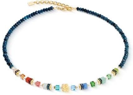 Marka: Coeur De Lion Model: 2102/10-1516 Dla kogo: Dla niej Szerokość: 0,4 cm Długość: 42cm + 6 cm łańcuszka przedłużającego Kolor: Złoty, Niebieski, Wielokolorowy Materiał: Wysokiej jakości, antyalergiczna stal szlachetna, Amazonit, Zielony awenturyn, Niebieski awenturyn, Karneol, Barwiony jadeit, Syntetyczne tygrysie oko, Kryształowe perły firmy Swarovski®, Kryształy Swarovski®, Kryształy Kryształki w kształcie krążków