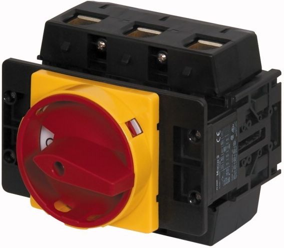 Rozłącznik On/Off In=125A P=45kW P5-125/EA/SVB Producent: Eaton Rozłącznik główny / rozłącznik izolacyjny wł./wył. wg IEC/EN 60947-3, 690 V, klasa ochrony przód IP65, rękojeść czerwona z wieńcem blokującym żółtym zamykana 3 kłódkami rozłączniki izolacyjne P5 mają niewielkie wymiary i solidną …