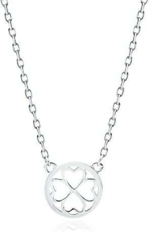 Subtelny i pełen wdzięku naszyjnik z wysokiej jakości srebra próby 925. Piękny wzór delikatnego łańcuszka z ciekawym detalem pod postacią umieszczonej w niewielkim okręgu czterolistnej koniczynki. Naszyjnik ten będzie pięknym i oryginalnym prezentem dla każdej wyjątkowej osoby. Długość naszyjnika: regulowana od 42cm do 45cm Średnica zawieszki: 10mm Średnica łańcuszka: 1mm Kolor: Srebrny Materiał: Srebro próby 925 Powłoka: Rodowanie Waga: 1,8g Zapięcie: Karabińczyk
