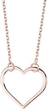 Subtelny i pełen wdzięku naszyjnik z pozłacanego różowym złotem, wysokiej jakości srebra próby 925. Piękny wzór delikatnego łańcuszka z ciekawym detalem pod postacią minimalistycznego serduszka. Naszyjnik ten będzie pięknym i oryginalnym prezentem dla każdej wyjątkowej osoby. Długość naszyjnika: regulowana od 42cm do 45cm Wymiary serduszka: 15,5mm x 15,5mm Średnica łańcuszka: 1mm Kolor: Różowe złoto Materiał: Srebro próby 925 Powłoka: Różowe złoto Waga: 1,6g Zapięcie: Karabińczyk