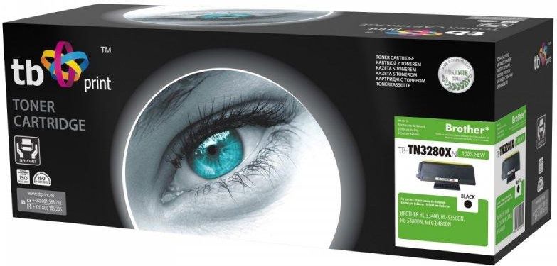 Toner do Brother TN3280X TB-TN3280XN BK 100% nowy Rodzaj wkładu: Toner Kolor: Czarny (black) Wydajność (5% pokrycie): 8000 str. A4 Chip: Nie Liczba w opakowaniu jednostkowym: 1 Kompatybilność: Brother HL 5340D, 5350DN, 5370, 5380DNBrother MFC 8480DN Kod oryginału: TN3280 Pasuje do: Brother TB Print TB-TN3280XN 5901500506915