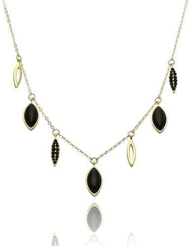 Delikatny naszyjnik Yvon z antyalergicznego metalu i czarnego kwarcu. Długość: 42-45cm (regulowany)Kolor: złoty, czarny