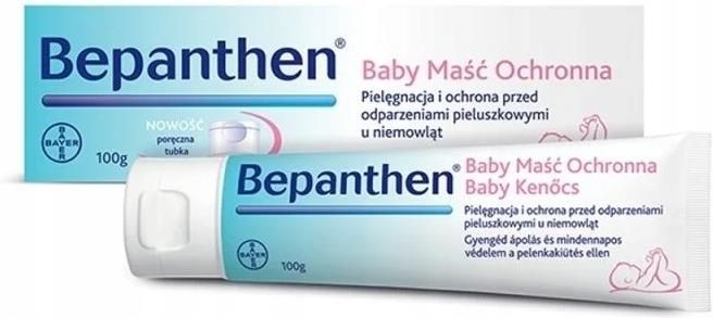 Maść ochronna Bepanthen Baby Maść ochronna Bepanthen Baby przeznaczona jest do stosowana po każdej zmianie pieluszki jako preparat na odparzenia pieluszkowe. Formuła maści wspomaga regenerację odparzeń, uszkodzeń i otarć naskórka, oparzeń słonecznych oraz podrażnionych brodawek sutkowych podczas karmienia. Stanowi skuteczną osłonę delikatnej skóry niemowląt przed szkodliwymi czynnikami zewenętrznymi. Dekspantenol zawarty w maści jest bardzo dobrze wchłaniany przez skórę i metabolizowany do kwasu pantotenowego (witamina B5), niezbędnego do prawidłowej czynności nabłonka i skóry. Cechy produktu: doskonała pod pieluszkę, wykazuje działanie łagodzące i przeciwzapalne, wspomaga gojenie się powstałych odparzeń, chroni skórę przed działaniem wilgoci, zwiększa elastyczność i nawilżenie skóry, nie zawiera konserwantów, środków zapachowych, barwiących ani dezynfekujących. Skład: 1 g maści zawiera 50 mg dekspantenolu. Stosowanie: Skórę smaruje się jeden lub kilka razy dziennie.