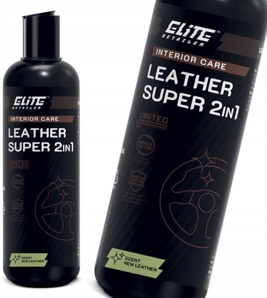 ELITE DETAILER - LEATHER SUPER 2in1 0,5LPREPARAT DO CZYSZCZENIA I ODŻYWKA TAPICERKI SKÓRZANEJNowatorski produkt zawierający cleaner oraz odżywki. Czyści i konserwuje elementy skórzane. Posiada filtr UV. Zmiękcza i zabezpiecza elementy skórzane przed ponownym zabrudzeniem.DOSTĘPNE POJEMNOŚCI: 0,5Lzapach: nowa skóraSposób aplikacji: aplikatorTyp: Gotowy do użyciaKategoria: INTERIOR CAREJAK UŻYWAĆ?Nanieść na powierzchnie za pomocą aplikatoraWypracuj produkt miękką mikrofibrąPowyższy produkt powstał według idei UNITED 4 INNOVATIONS, która zakładała współpracę profesjonalnych salonów detailingowych z naszym działem produktów.W trakcie trwających ponad rok wspólnych prac w laboratorium spędziliśmy setki godzin na testowaniu produktów, aby stworzyć preparaty, które zadowolą nawet najbardziej wymagających odbiorców. Do stworzenia innowacyjnej serii chemii i kosmetyków samochodowych używamy surowców i komponentów największych, renomowanych producentów na świecie.Każdy z produktów, który oddajemy w Państwa ręce, jest owocem tej wyjątkowej współpracy ekspertów, wieloletnich praktyków i prawdziwych pasjonatów detailingu.