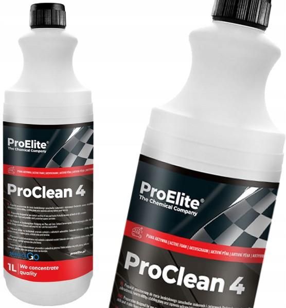 PROELITE PROCLEAN4 1LWydajna Aktywna Piana do mycia samochodówProClean 4 z serii ProElite to aktywna, obfita, stabilna, wydajna i gęsta piana. Produkt sprawdza się idealnie do mycia wszystkich rodzajów pojazdów. Niezwykle wydajna formuła, dzięki skoncentrowanej recepturze. Butelka preparatu o pojemności 1 litra zdecydowanie wystarczy do stworzenia nawet 30 litrów roztworu.Produkt bezkonkurencyjnie wnika i zmiękcza wszystkie, nawet najtrudniejsze i najdrobniejsze zabrudzenia znajdujące się na karoserii, dzięki zastosowanej technologii Surface Go! Starannie dobrana technologia tworzy idealnie trwałe micele, które są odpowiedzialne za całkowite usunięcie brudu z karoserii, bez pozostałości i śladów! Skuteczność działania na wyciągnięcie ręki! Właściwości antykorozyjne wydajnej i aktywnej piany ProClean 4 są gwarancją na to, że Twoje auto będzie lśnić bez obaw o stan jego lakieru!PIANA AKTYWNA - Jak stosować?Przed użyciem niezwykle wydajnej, aktywnej piany ProClean 4, należy zachować odpowiednie rozcieńczenie. Kompaktowa butelka o pojemności 1 litra to około 30 litrów gotowego roztworu.W przypadku rozpylaczy zaleca się stężenie 1:20-1:30 natomiast dla pianownic 1:2-1:4. Przygotowaną mieszaniną należy pokryć całą powierzchnię karoserii pojazdu. W szczególności należy zwrócić uwagę na miejsca trudno dostępne, czyli zakamarki i fragmenty szczególnie narażone na uporczywy brud.Następnie należy odczekać kilka minut, aż piana zacznie delikatnie spływać z powierzchni samochodu. Po chwili całą pianę wraz z zebranym brudem, należy dokładnie i obficie spłukać wodą pod ciśnieniem.W ten sposób pozbędziesz się całego brudu i resztek piany aktywnej. Produkt jest zdecydowanie bezpieczny dla karoserii Twojego pojazdu.PIANA AKTYWNA - Gdzie stosować?ProClean 4 może być stosowany w myjniach bezdotykowych podczas mycia wstępnego i zasadniczego oraz przy ciśnieniowym myciu pojazdów zarówno metodą pianową, jak i kropelkową.Naprawdę łatwy i prosty w użyciu produkt, posiadający niezwykle dopracowane właściwości. Sprawia, że jest to idealny produkt do pielęgnacji samochodu nawet w domowym zaciszu.Wystarczy zachować odpowiednie proporcje w trakcie rozcieńczania preparatu i gotowe!INFORMACJE SZCZEGÓŁOWE:Preparat ProClean 4 to niekwestionowany produkt o intensywnym, przyjemnym zapachu, który tworzy obfitą, aktywną, stabilną i gęstą pianę. Środek posiada właściwości antykorozyjne i jest wzbogacony o technologię Surface Go. Zaleca się stosowanie odpowiedniego rozcieńczenia rekomendowanego przez producenta.Typ:KoncentratWydajność:1L koncentratu daje do 30L roztworuUmycie auta już od 1,20 złDostępne opakowania:1L, 5L, 25LDozowanie:Rozpylacze: 1:20-1:30Pianownice: 1:2 – 1:4Bezpieczeństwo:Bez NTA – rakotwórczeBez rozpuszczalnikówDziała w zakresie pH – 11,80 – 13,00ProClean 4 z serii ProElite to aktywna i wydajna piana o bardzo przyjemnym i intensywnym zapachu. Produkt sprawdza się idealnie do mycia wszystkich rodzajów pojazdów, od samochodów osobowych, przez busy i tiry, aż po maszyny budowlane i ciężki sprzęt rolniczy. Produkt jest bardzo wydajny, co zawdzięcza swojej w pełni skoncentrowanej recepturze. Butelka preparatu o pojemności 1 litra zdecydowanie wystarczy do stworzenia nawet 30 litrów roztworu.Środek przeznaczony do czyszczenia i mycia pojazdów tworzy charakterystyczną obfitą i gęstą pianę na czyszczonej powierzchni. Dodatkowo bezkonkurencyjnie wnika i zmiękcza wszystkie zabrudzenia znajdujące się na karoserii. A to wszystko dzięki technologii Surface Go, czyli niezwykle innowacyjnej metodzie doboru surfaktantów i ich idealnej proporcji w formule.
