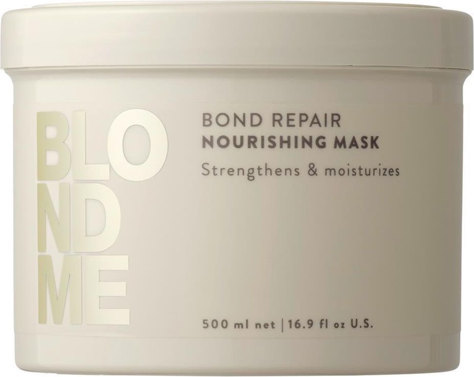 Schwarzkopf BlondMe Bond Repair Nourish – wzmacniająca maska do włosów blond. Pojemność: 500 Profesjonalna maska do włosów blond marki Schwarzkopf, intensywnie odżywiająca i nawilżająca, wzmacniająca strukturę włosa dzięki innowacyjnej technologii Bond Repair. Przeznaczona do pielęgnacji włosów blond – naturalnych, farbowanych i rozjaśnianych. Marzysz o gładkich, lśniących i mocnych blond włosach? Chcesz zregenerować kosmyki po zabiegach chemicznych i jednocześnie zapewnić im intensywne nawilżenie? Wypróbuj Schwarzkopf BlondMe Bond Repair Nourish – maskę, która skutecznie wzmacnia wewnętrzną strukturę włosa i pomaga zmniejszyć jego łamliwość nawet o 95%. Już po pierwszym użyciu włosy stają się 15 razy mocniejsze, a dzięki unikalnej formule bez obciążenia fryzura zyskuje zdrowy wygląd. Technologia Bond Repairodbudowuje i tworzy nowe wiązania wewnątrz włókien włosa, a specjalna osłona z lekkich polimerów z ekstraktem z białej herbaty chroni przed czynnikami zewnętrznymi. Schwarzkopf BlondMe Bond Repair Nourish zawiera olej ze słodkich migdałów, który głęboko odżywia i wygładza włosy, przywracając im elastyczność. Masło shea nadaje włosom miękkość i chroni je przed przesuszeniem. Ekstrakt z zielonej herbaty działa przeciwutleniająco, wspierając regenerację włosów i ochronę przed działaniem wolnych rodników. Dodatek oleju z pestek moreli oraz olejku cytrynowego wzmacnia połysk i nadaje włosom zdrowy, promienny wygląd. Zalety stosowania maski Schwarzkopf BlondMe Bond Repair Nourish: intensywnie odżywia i nawilża włosy, wzmacnia wewnętrzną strukturę włosa, zmniejsza łamliwość nawet o 95%, pozostawia włosy 15 razy mocniejsze już po pierwszym użyciu, nie obciąża włosów, chroni przed działaniem czynników zewnętrznych dzięki lekkim polimerom i ekstraktowi z białej herbaty. Sposób użycia maski Schwarzkopf BlondMe Bond Repair Nourish: Nanieś maskę równomiernie na wilgotne, osuszone ręcznikiem włosy. Pozostaw na 5–10 minut, a następnie dokładnie spłucz. Skład Aqua (Water, Eau), Cetearyl Alcohol, Glycerin, Behentrimonium Chloride, Distearoylethyl Hydroxyethylmonium Methosulfate, Isopropyl Myristate, Behenamidopropyl Dimethylamine, Hydroxypropylgluconamide, Hydroxypropylammonium Gluconate, Prunus Amygdalus Dulcis (Sweet Almond) Oil, Camellia Sinensis Leaf Extract, Panthenol, Parfum (Fragrance), Lactic Acid, Amodimethicone, Butyrospermum Parkii (Shea) Butter, Isopropyl Alcohol, Prunus Armeniaca (Apricot) Kernel Oil, Propylene Glycol, Sodium Benzoate, Tetramethyl Acetyloctahydronaphthalenes, Ceteareth-20, Trideceth-10, Alpha-Isomethyl Ionone, Linalyl Acetate, Linalool, Citrus Limon (Lemon) Peel Oil, Limonene, Phenoxyethanol, Benzyl Alcohol, Potassium Sorbate.