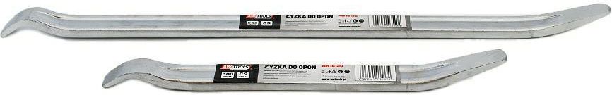 Wytrzymała łyżka do opon wykonana z kutego stopu stali węglowej (CS), wzmocniona podwójnym przekrojem ceownika, odporna na korozję, chromowana, matowa powierzchnia. Posiada profilowane stożkowe i zagięte końcówki ułatwiające zdjęcie opony. Przeznaczona do naciągania opon na felgi i podważania w samochodach, motocyklach i rowerach. Dane techniczne: Rozmiar: 20 "/ 500mm Waga: 0.650kg