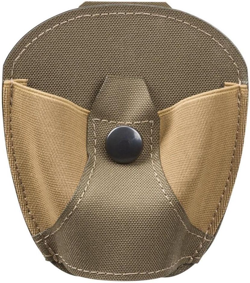 Kabura na kajdanki Direct Action Low Profile Cuff Pouch Adaptive Green (PO-CFLP-CD5-AGR) H Solidnie wykonana kabura na kajdanki z niezwykle wytrzymałego nylonu gwarantuje ochronę i stabilność przechowywanych w niej elementów. Jej pojemność utrzymana jest za sprawą funkcjonalnego zatrzasku, który rzadko również pozwala na łatwe i szybkie wyjęcie kajdanek. Dzięki lekko usztywnionemu, niskoprofilowemu designowi, kabura umożliwia dyskretne przenoszenie kajdanek, eliminując ryzyko niechcianego hałasu podczas ruchu. Zastosowany system montażu z rzepami to doskonałe rozwiązanie dla osób ceniących czas i wygodę – możemy założyć kulturę bez konieczności zdejmowania pasa. Działa dobrze z pasami o szerokości do 45 mm, a także kompatybilna z większością typów kajdanek. Dane techniczne Materiał: 100% nylon Kolor: Adaptive Green Wymiary: 110 x 98 x 15 mm Waga: 46 g Producent: Direct Action, Polska