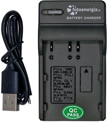 Ładowarka współpracuje z akumulatorami: NIKON: EN-EL3 , EN-EL3E FUJI: NP-150 OLYMPUS: BLM1/BLM5 MINOLTA: NP400 SAMSUNG: SLB-1674 PENTAX: DLI50 Specyfikacja: Ładowanie jest sterowane mikroprocesorem, co zapewnia długą pracę akumulatora. Długość ładowania wynosi od 1,5 do 2,5 godziny, w zależności od pojemności akumulatora. Diody sygnalizujące ładowanie/naładowanie. Ładuje wysokim (ale bezpiecznym) prądem impulsowym 500mA, akumulatory o dowolnej pojemności (nawet 10 000mAh). Trwała i estetyczna. Bardzo lekka - waży ok. 70g. Wymiary: 4,8 x 8,4 x 2,2 cm Gwarancja: 12 miesięcy Kod produktu: 24219 Urządzenie zasilane jest z gniazda USB. Dzięki temu możliwe jest ładowanie z laptopa, power banka, ładowarki od smartfona oraz w samochodzie. Opis produktu Procesorowa ładowarka marki fotoenergia.pl jest bardzo szybka i wygodna. Umożliwia ładowanie dedykowanych akumulatorków. Działa w pełni automatycznie, sygnalizuje stan pracy i jest w pełni bezpieczna. Bezpieczeństwo: Automatycznie rozpoczyna i kończy ładowanie - nie trzeba jej pilnować. Rozpoznaje polaryzację. Posiada zabezpieczenia przed przegrzaniem lub przeładowaniem akumulatora. Bardzo niska awaryjność. Certyfikat Rohs, Ce. Pasujące akumulatory z modeli aparatów: Nikon: D100, D200, D300, D50, D70, D700, D70s, D80, D90, D900 Fuji: FinePix S5 pro Olympus: CAMEDIA C-5060 Wide Zoom, CAMEDIA C-7070 Wide Zoom, CAMEDIA C-8080 Wide Zoom, E-1, E1, E-3, E3, E-30, E30, Evolt E-300, E300, Evolt E-330, E330 Evolt E-500, E500, Evolt E-510, E510, Evolt E-520, E520 Konica Minolta: a-5 DIGITAL, a-7 DIGITAL, a Sweet DIGITAL, DiMAGE A2, Dynax 5D, Dynax 7D, Maxxum 5D, Maxxum 7D Pentax: K10, K10D, K20, K20D Samsung: GX-10, GX-20 Sigma: SD14 W zestawie Ładowarka Kabel USB Oryginalne opakowanie