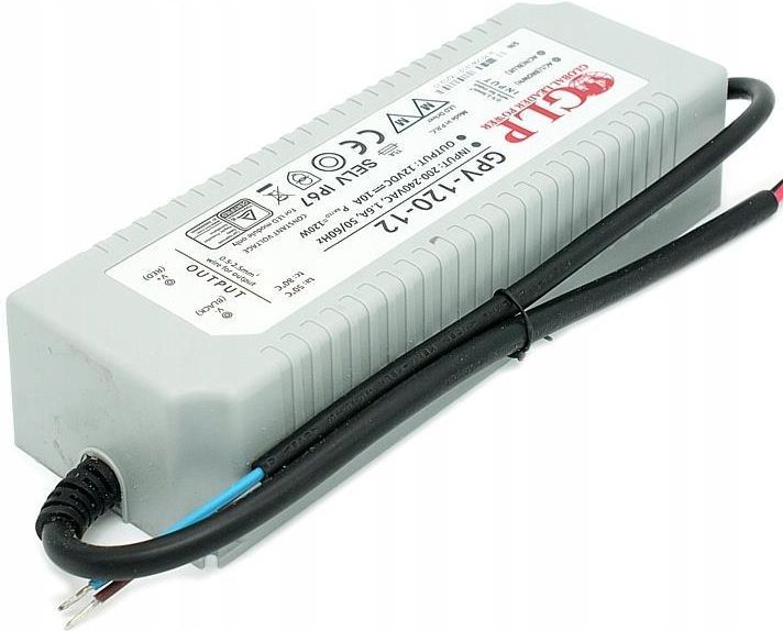 Profesjonalny wodoodporny zasilacz LED, o mocy 120 Watt na napięcie 12V DC, marki GLP Power. Model GPV-120-12, to profesjonalny hermetyczny zasilacz do oświetlenia LED o klasie szczelności IP67, w hermetycznej trwałej obudowie z wysokiej jakości materiałów i komponentów, do stosowania w pomieszczeniach o dużej wilgotności, oraz w miejscach narażonych na kontakt z wodą, takich jak łazienka, sauna itp. Zasilacz GLP GPV o klasie szczelności IP67, jest zasilaczem który może być montowany na zewnątrz, i może służyć jako zasilacz zewnętrzny do oświetlenia zewnętrznego, na przykład do zasilenia oświetlenia w pergoli, na tarasie, do podłączenia oświetlenia Led w elewacji Zasilacz hermetyczny GLP z serii GPV, sprawdzi się również jako zasilacz do podłączenia oświetlenia Led w kasetonie reklamowym, neonów zewnętrznych Led itp. Główne zalety zasilacza z serii GPV zasilacz z hermetyczną obudową IP67, specjalne otwory do łatwego montażu zasilacza, zabezpieczenie zasilacza przeciwzwarciowe, nadprądowe, nadnapięciowe, zasilacz II klasa ochronności, wyprowadzone zaizolowane przewody instalacyjne do łatwego podłączenia zasilacza do instalacji elektrycznej. Podstawowe zastosowanie zasilacza z serii GPV zasilacz do oświetlenia Led w łazience, zasilacz do Ledów na zewnątrz, zasilacz do Led w saunie, zasilacz do modułów Led w kasetonie, zasilacz to oświetlenia Led w elewacji, zasilacz do żarówek Led na 12V w podbitce. Parametry techniczne moc znamionowa zasilacza: 120 Watt prąd znamionowy zasilacza: 10A maksymalne bezpieczne obciążenie dla zasilacza: do 96 Watt napięcie na wyjściu: 12V typ napięcia na wyjściu: DC - stałe, zasilanie na wejściu: 230V AC (w zakresie 110V÷264V) prąd AC na wejściu: 1A / 230V AC zakres częstotliwości napięcia: 47Hz÷63Hz tętnienia i szumy: 250mVp-p obudowa: hermetyczna ABS, chłodzenie: pasywne, klasa szczelności: IP67, klasa izolacji elektrycznej: II, zabezpieczenia: przeciążeniowe, zwarciowe, nadnapięciowe, zakres temperatury pracy: -30°C÷70°C, wymiary (dł. x szer. x wys.): 203mm x 70mm x 45mm. UWAGA: przy doborze mocy zasilacza należy uwzględnić obowiązkowy bezwzględny zapas mocy (Watt) wynoszący minimum 20%. mocy znamionowej zasilacza. (zasilacz o mocy znamionowej 100W, ma maksymalną moc obciążeniową 80W). Zachowanie zapasu powoduje prawidłową pracę zasilacza przez dłuższy czas bez zakłóceń, oraz w znacznym stopniu wydłuża trwałość zasilacza. UWAGA: Zasilacze które nie posiadają gotowych wtyczek przyłączeniowych, i wymagane jest podłączenie zasilacza do odpowiednich przewodów instalacji elektrycznej wysoko napięciowej oraz wymagane jest podłączenie do odpowiednich przewodów instalacji oświetleniowej niskonapięciowej, powinno zostać wykonane przez osoby posiadające odpowiednie kwalifikacje i uprawnienia elektryczne. W naszej ofercie znajdziesz dodatkowe produkty do taśmy LED taśmy LED: standard, premium i profesjonalne na 12V i 24V, zwykłe, wodoodporne i wodoszczelne, zasilacze LED: montażowe, meblowe, hermetyczne, gniazdkowe i na szynę DIN, profile i listwy do taśm LED: meblowe, podłogowe, architektoniczne, wpuszczane, nawierzchniowe, kątowe i okrągłe, sterowniki LED: RGB, RGBW, MONO, CCT na łączność IR, RF i WiFi oraz kontrolery SmartHome, włączniki LED: włączniki meblowe do profili, włączniki do szafek, włączniki podblatowe, czujki zbliżeniowe, czujki ruchu, przewody i złączki do taśm LED Dlaczego warto wybrać naszą ofertę na rynku oświetleniowym od ponad 10 lat, sprawdzone produkty i sprawdzeni dostawcy, prawdziwe wartości i rzetelne parametry produktów (bez ściemy i bajek), najwyższe zadowolenie klientów (opinie Google), zaufanie renomowanych odbiorców, firma ze sklepami stacjonarnymi, nie twór typowo internetowy, doświadczenie i fachowe doradztwo, oferujemy własny serwis wraz z usługami dodatkowymi (nie tylko zwykła sprzedaż bez wsparcia),
