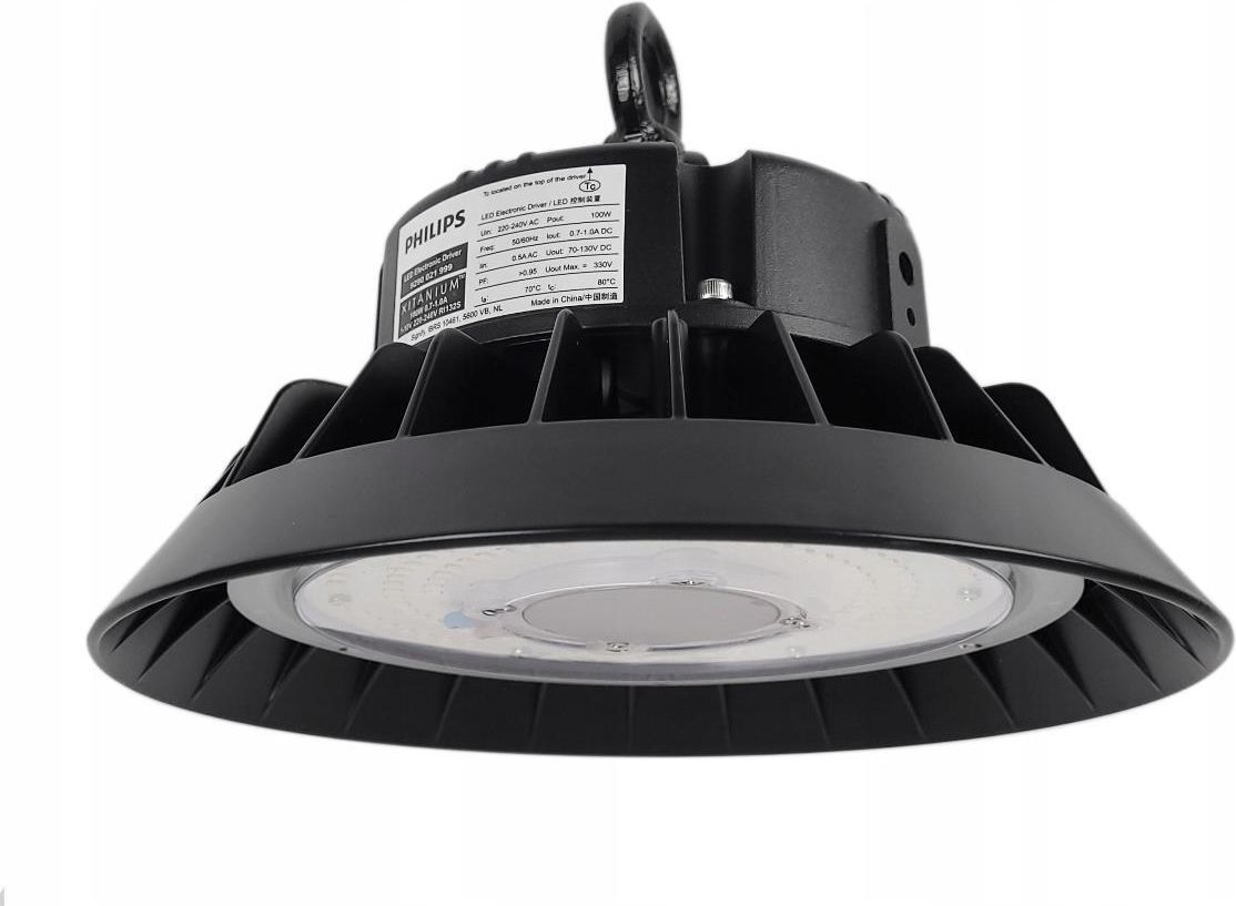 Lampa LED Philips Driver High Bay Furud 100W 4000K Szukasz oświetlenia, które zapewni doskonałą widoczność w Twoim magazynie, hali produkcyjnej lub obiekcie sportowym? Poznaj nowoczesną lampę LED High Bay Furud 100W 4000K — idealne rozwiązanie dla Twojego biznesu! Główne cechy produktu Wykonanie na podzespołach renomowanego producenta Philips (zasilacz i diody). Strumień świetlny na poziomie 15 000 lm (150lm/W) zapewniający doskonałe oświetlenie. Świetna jakość potwierdzona najdłuższą na rynku gwarancją. Obniżenie kosztów energii elektrycznej o 50%-90%. Wysoka odporność na działanie czynników zewnętrznych IP65. Temperatura barwowa 4000K dająca naturalne światło. Uniwersalne zastosowanie, m.in.: hale produkcyjne, magazyny, lofty, obiekty sportowe. Co daje wybór lampy LED High Bay Furud 100W 4000K? Wzrost efektywności. Doskonałe oświetlenie znacznie poprawia warunki pracy i zwiększa produktywność. Ekologiczne rozwiązanie dla Twojego biznesu. Dzięki zastosowaniu najnowszej technologii nasza lampa pozwoli Ci na zmniejszenie opłat za energię elektryczną oraz kosztów konserwacji. Inwestycja w przyszłość. Ciesz się zwrotem zakupu po upływie 6 miesięcy. Gwarancja i bezpieczeństwo Nasza lampa to w pełni certyfikowany produkt, który spełnia najwyższe europejskie standardy bezpieczeństwa ⚙️. Najlepsze rozwiązanie dla Twojej inwestycji Lampa LED High Bay Furud 100W 4000K to doskonały wybór dla każdego przedsiębiorstwa, które potrzebuje efektywnego, energooszczędnego i niezawodnego oświetlenia. Zamów nasz produkt już teraz i sprawdź, jak możesz poprawić warunki pracy i zaoszczędzić na kosztach energii! Parametry techniczne Moc: 100W Strumień świetlny: 15 000 lumenów Efektywność: 150lm/W Napięcie: AC200-240V / 50-60Hz Barwa światła: 4000K biała neutralna Klasa szczelności: IP65 CRI: 80 Ra Power Factor: ≥0.95 Temperatura otoczenia pracy: -40°C - 70°C Kąt świecenia: 120° Możliwość ściemniania: tak (0-10V) Temperatura pracy: -30°C - 60°C Materiał: aluminium Wymiary: śr. 238 mm, wys.122 mm Waga: 1,8 kg Żywotność: 50 000h Certyfikaty: CE, RoHS Zasilacz: Philips Xitanium Diody: SMD 2835 - 140 szt. Gwarancja: 5 lat