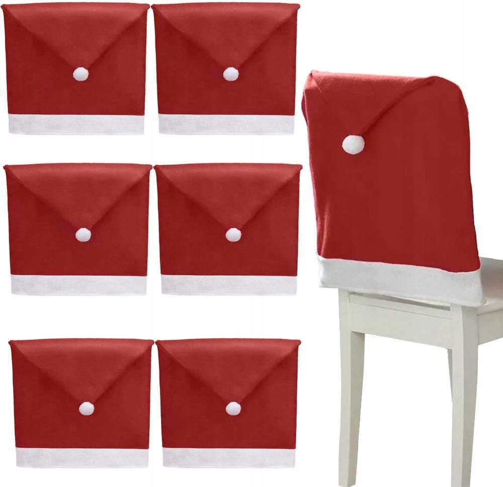 POKROWCE NA KRZESŁO CZAPKA MIKOŁAJA ŚWIĄTECZNY x6 Strzelin