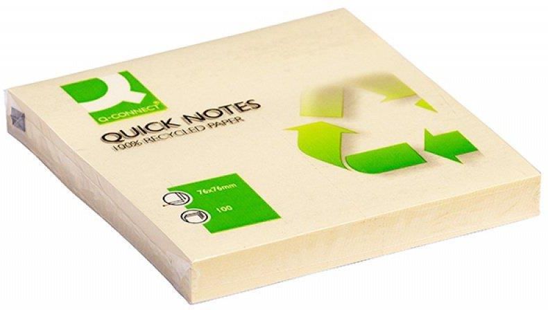Q-Connect Bloczek Samoprzylepny 100% Recycled 76X76Mm 100 Kart. Żółty Strzelin