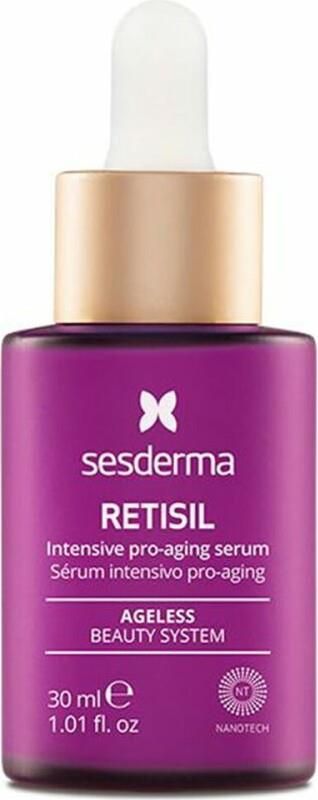 Sesderma Retisil Intensywne Serum Pro-aging to produkt kosmetyczny, który wspomaga redukcję zmarszczek i poprawia elastyczność skóry. Formuła została wzbogacona składnikami aktywnymi, które nawilżają oraz przywracają skórze gładkość. Serum jest przeznaczone do codziennego stosowania na twarz, szyję i dekolt. Dzięki lekkiej konsystencji, dobrze się wchłania. Produkt może być stosowany jako baza pod makijaż lub jako kuracja intensywnie regenerująca.