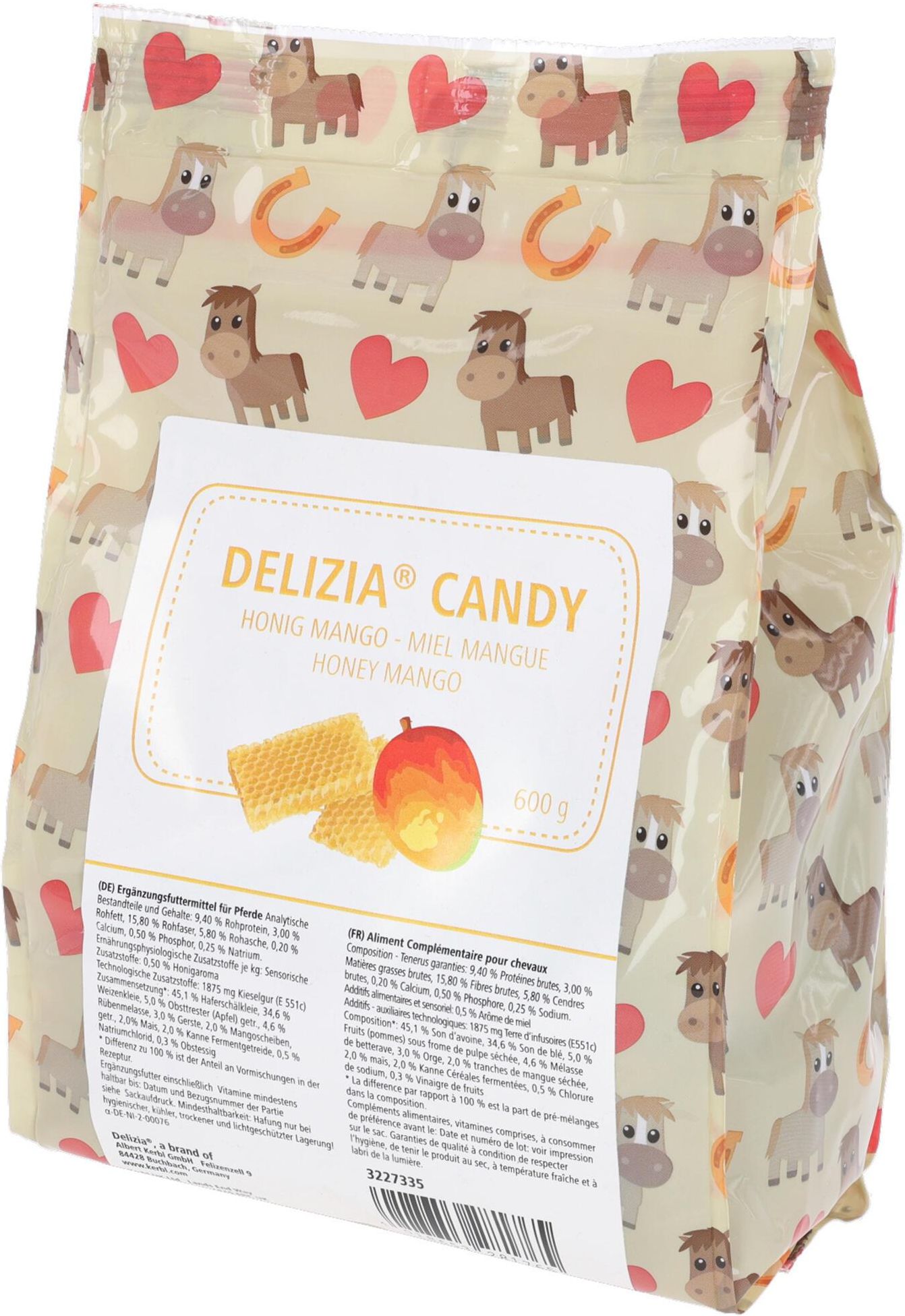 Smakołyki dla konia Delizia Candy, Miód/Mango, 600g idealna forma nagrody dla koni podczas treningu prawdziwy przysmak z owocami i dobranymi ziołami wysokiej jakości naturalne dodatki paszowe, które rozpieszczają podniebienie konia wzbogacone witaminami i minerałami …