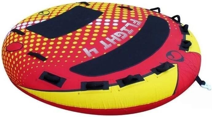 Spinera Flight 4 Koło do holowania za motorówką Dmuchane koło holownicze Spinera Flight 4 to doskonały wybór dla grup przyjaciół i rodzin poszukujących emocjonujących wodnych przygód. Dzięki imponującej średnicy 229 cm i konstrukcji przeznaczonej dla czterech osób, zapewnia niezapomniane doświadczenia podczas holowania za motorówką. Wykonane z wyjątkowo wytrzymałego nylonu 840D oraz PVC o grubości 0,7 mm, gwarantuje trwałość i odporność na uszkodzenia. Miękka pianka EVA na pokładzie chroni skórę przed otarciami, a osiem ergonomicznych uchwytów z osłonami zapewnia pewny chwyt i komfort nawet przy dużych prędkościach. Wyposażone w zawór bostoński umożliwia szybkie pompowanie i spuszczanie powietrza, a szybkozłącze ułatwia podłączenie liny holowniczej. Najważniejsze cechy Wytrzymała konstrukcja: Wykonane z nylonu 840D i PVC o grubości 0,7 mm, zapewnia długotrwałe użytkowanie.​ Komfort użytkowania: Miękka pianka EVA na pokładzie chroni przed otarciami, a osiem uchwytów z osłonami zapewnia pewny i wygodny chwyt.​ Przeznaczenie dla czterech osób: Idealne dla grup przyjaciół, rodzin czy na imprezy integracyjne.​ Łatwość obsługi: Zawór bostoński umożliwia szybkie pompowanie i spuszczanie powietrza, a szybkozłącze ułatwia podłączenie liny holowniczej. Dane techniczne Średnica: 229 cm (bez powietrza)​ Grubość PVC: 0,7 mm​ Grubość pokrywy nylonowej: 840D​ Uchwyty: 8 z osłonami z pianki EVA​ Maksymalna liczba użytkowników: 4 osoby
