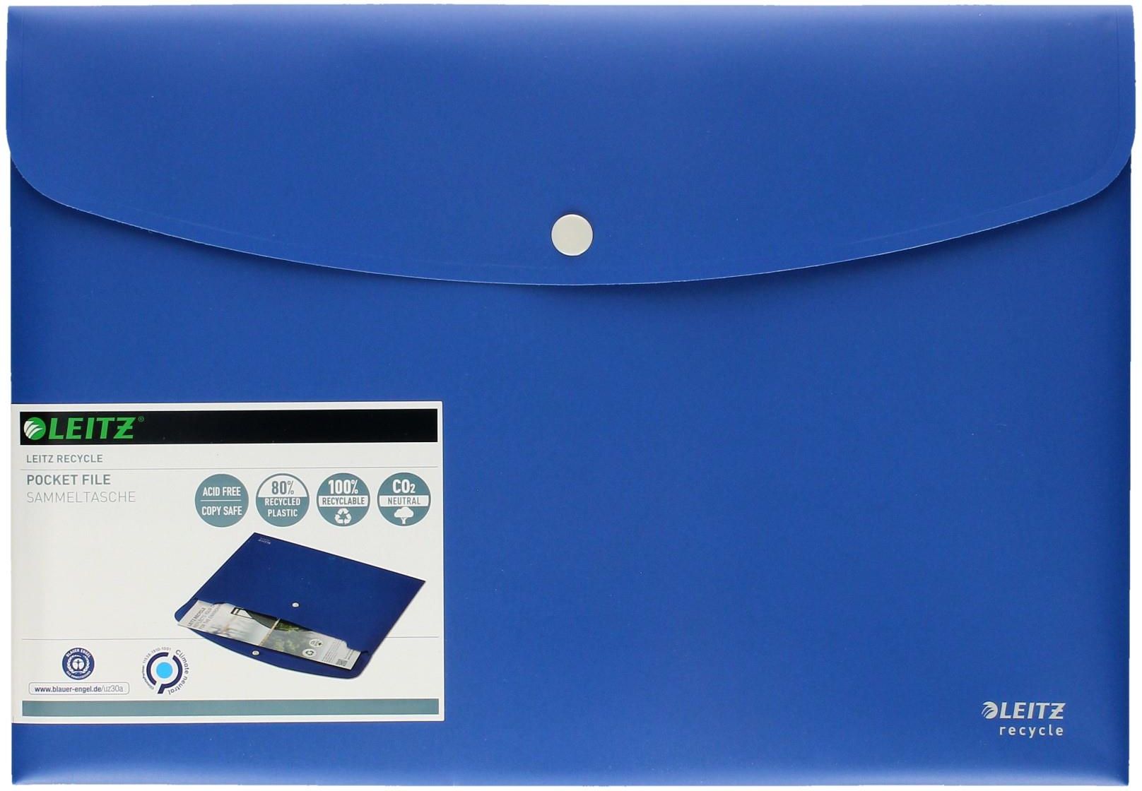 TECZKA KOPERTOWA LEITZ A4 PP RECYCLE NIEBIESKA Przyciągająca wzrok, najwyższej jakości teczka kopertowa z polipropylenu, zamykana na zatrzask, aby zapobiec wypadaniu dokumentów, idealna do codziennego użytku w szkole, w biurze i w domu. Wykonana z plastiku w 80% pochodzącego z recyklingu, neutralna dla klimatu i w 100% nadająca się do ponownego przetworzenia. Posiada certyfikat Blue Angel. Ta solidna teczka jest niezwykle praktyczna i doskonale pasuje do innych produktów z kolekcji Leitz Recycle, zawierającej nowoczesne i ekologiczne produkty biurowe świetnie prezentujące się w domu i w biurze. Dzięki nowej, przyjaznej dla środowiska linii produktów Recycle oferowanej przez firmę Leitz masz wpływ na poprawę zarówno środowiska biurowego, jak i całej naszej planety. Wykonana z plastiku w 80% pochodzącego z recyklingu (pokonsumpcyjnego), neutralna dla klimatu i w 100% nadająca się do ponownego przetworzenia. Posiada certyfikat Blue Angel, Idealna do przenoszenia i ochronydokumentów w formacie do A4, notatek, zdjęć i innych akcesoriów, Klapka z zamknięciem na zatrzask chroni dokumenty przed wypadaniem, Mieści 60 kartek A4 (80 g/m2), Bezkwasowa i copy safe, Nieprzezroczysty materiał chroni wrażliwe dane osobiste lub służbowe, Lekka i wytrzymała, nadaje się do wielokrotnego użytku, Sprzedawana jedynie z etykietą – nie przyczynia się do gromadzenia odpadów opakowaniowych.