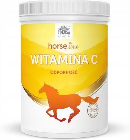 Witamina C HORSE LINE 1000g Witamina C dla koni i kucy. Witamina C – lewoskrętna wykazuje działanie przeciwutleniające. Korzystnie wpływa na utrzymanie równowagi fizjologicznej tkanki łącznej, chrzęstnej i kostnej jak również tworzenie kolagenu, elastyny oraz kwasu hialuronowego. Zwiększone zapotrzebowanie na witaminę C występuje w sytuacjach stresogennych (transport, zawody), wzmożonej intensywności treningów, w rekonwalescencji (po przebytych kontuzjach, chorobach), osłabieniu i alergii. Szczególnie w okresie braku dostępu do pastwiska znacznie zmniejsza się możliwość pozyskania odpowiedniej ilości witaminy C z zielonki. Porada: zaleca się szczególnie wzbogacać dietę o witaminę C tych koni, które nie posiadają dostępu do pastwiska oraz podlegają intensywnym treningom. Również zaleca się podawanie witaminy C jako uzupełnienie kuracji kolagenem lub MSM w celu zwiększenie syntezy i przyswajalności. Kiedy powinniśmy wzbogacić dietę naszego konia o witaminę C? W każdej sytuacji, gdy: narażony jest na sytuacje stresowe (zawody, transport, zmiana stajni) jego organizm jest poddawany dużemu wysiłkowi fizycznemu (trening, starty w zawodach) nie ma dostępu do świeżej zielonki, która obfituje w witaminę C jego odporność jest osabiona ma infekcje układu oddechowego Za co odpowiedzialna jest witamina C ? wpływa na prawidłowe działanie układu immunologicznego jest antyoksydantem, chroni organizm przed działaniem wolnych rodników, które prowadzą do uszkodzenia komórek ma duże znaczenie w ochronie płuc przed działaniem drobnoustrojów, które powodują choroby układu oddechowego bierze czynny udział w syntezie kolagenu i karnityny Czy wiesz, że: Podawanie witaminy C wraz z MSM i kolagenem potęguje ich korzystne działanie i wspomaga ich syntezę! Zapobiega uszkodzeniom oksydacyjnym w obrębie komórek, które pogarszają zdolność organizmu do wykonywania wysiłku fizycznego. Starsze konie mają obniżoną zdolność syntetyzowania witaminy C dlatego ważna jest jej dodatkowa suplementacja. Klacze w ciąży oraz w okresie laktacji mają zwiększone zapotrzebowanie na witaminę C. Sporadyczne podawanie witaminy C nie daje oczekiwanych efektów, istotna jest regularna suplementacja. Ważne jest, że nadmiar witaminy C jest wydalany z organizmu wraz z moczem. Skład: 100% kwas l-askorbinowy (C6H8O6) Dawkowanie/24h Konie: 1 miarka Kuce: 0,5 miarki Sposób podania: wymieszać z paszą treściwą. Opakowanie 1000g wystarcza na 50 dni codziennej suplementacji. Producent: Pokusa