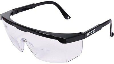 Okulary ochronne YT-73615 z soczewkami powiększającymi obraz: +3,0D przeznaczone są do ochrony oczu przy pracach ręcznych i mechanicznych np. szlifowanie, wiercenie, dłutowanie itp.