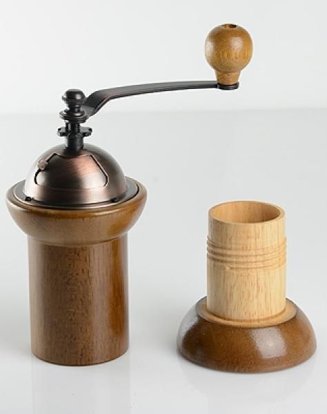Tradycyjny młynek ręczny, w drewnianej obudowie w kolorze orzechowym z głębokim wewnętrznym zbiornikiem na zmieloną kawę. Młynek wyposażony jest w mechanizm mielący wykonany z żeliwa, dzięki czemu jest on bardzo trwały i precyzyjny. Ponadto mechanizm posiada regulację mielenia, więc sami możemy …
