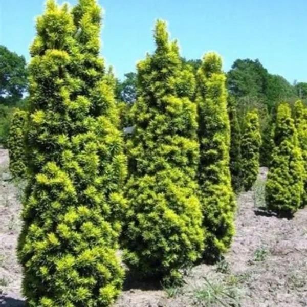 Cis 'David' doniczka C2 zimozielony, żółty iglak Taxus baccata ‘David’ to piękna, wolno rosnąca odmiana cisa pospolitego o złocistych, pionowych przyrostach. Tworzy gęste, zwarte, wyprostowane krzewy, które świetnie rozświetlają rabaty i kompozycje iglaste. Dorasta do około 1–1,2 m wysokości i 0,4–0,6 m szerokości. Igły są żółtozielone, intensywnie wybarwione szczególnie wiosną i na młodych pędach, a zimą zyskują lekko brązowy odcień. Cis ‘David’ jest zimozielony, bardzo mrozoodporny, długowieczny i świetnie znosi cień — jedna z niewielu żółtych odmian, która nie przypala się w półcieniu. Nadaje się do pojemników, ogrodów skalnych, małych ogrodów, kompozycji nowoczesnych oraz do sadzenia w grupach. Pokrój: kolumnowy Nasłonecznienie: słońce Wilgotność: umiarkowanie wilgotne Liść/Igła: złote, żółte Walory dodatkowe: zimozielone Strefa mrozoodporności: 5b Gleba: roślina tolerancyjna Cis pospolity 'David'
