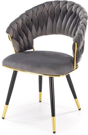 Krzesło Tapicerowane Welurowe do Salonu Glamour Szare Czarne Złote K551 Krzesło K551 posiada wygodne siedzisko i oparcie w modnym kolorze szarym. Mebel tapicerowany jest miękką i przyjemną w dotyku - tkaniną BLUVEL#14. Tego typu materiał, a także stelaż w czarno złotym wybarwieniu pięknie …