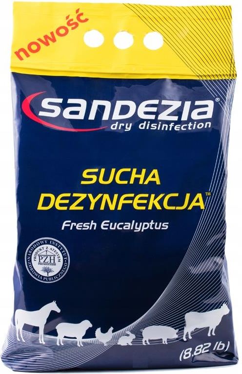 SANDEZIA SUCHA DEZYNFEKCJA preparat do dezynfekcji budynków inwentarskich Produkt skutecznie zwalcza bakterie, wirusy, pasożyty i grzyby. Niszczy stadia larwalne much i innych owadów znacząco redukując ich liczbę. SANDEZIA działa szczególnie w zawilgoconych pomieszczeniach. Intensywnie osusza mokrą ściółkę zapobiegając przekształceniu się mocznika w amoniak i wydzielaniu się szkodliwych gazów. Preparat utrzymuje niskie pH, uniemożliwiając rozwój chorobotwórczych drobnoustrojów. Zmniejsza ilość chorób w stadzie, ogranicza stosowanie antybiotyków i redukuje koszty leczenia, a w przypadku wystąpienia infekcji wspomaga leczenie. Preparaty SANDEZIA są wytwarzane z najwyższej jakości składników mineralnych. Ponadto są oparte na innowacyjnej recepturze specjalnie dostosowanej dla poszczególnych grup zwierząt. Uzyskały również pozytywną ocenę i atest zakładu Toksykologii i Oceny Ryzyka – Państwowego Zakładu Higieny w Warszawie Nr PZH/HT-3298/2017. Czym jest sucha dezynfekcja? Sucha dezynfekcja to środek służący do osuszania i dezynfekcji pomieszczeń dla zwierząt hodowlanych. Preparat można stosować także w obecności zwierząt, gdyż jest dla nich całkowicie bezpieczny. Produkt oprócz tego, że osusza ściółkę, likwiduje również bakterie, wirusy i grzyby. Jak działa sucha dezynfekcja? Obecnie większość preparatów do suchej dezynfekcji opiera się na związku chloraminy, która przy kontakcie z wodą rozkłada się, wydzielając podchlorynę. Związek ten ma właściwości przeciwutleniające i biobójcze. Likwidowane są bakterie, wirusy a także larwy much czy jaja pasożytów. W celu większej skuteczności produktu zaleca się aplikację posypki na wilgotne miejsca. Zalety stosowania suchej dezynfekcji? Sucha dezynfekcja zwalcza bakterie, wirusy i grzyby. Pozwala utrzymywać optymalny mikroklimat w obiekcie poprzez redukcję wilgotności powietrza w otoczeniu. (Wysokie stężenie pary wodnej w obiekcie negatywnie wpływa na stan zdrowia zwierząt). Regularne stosowanie preparatu zabezpiecza stado przed chorobami i infekcjami. Minimalizuje powstawanie szkodliwych gazów takich jak: amoniak, siarkowodór. Ogranicza liczebność much i zabija ich stadia larwalne. Ogranicza prawdopodobieństwo chorób w stadzie. Przedłuża świeżość ściółki. Jak stosować preparat do suchej dezynfekcji? Suchą dezynfekcję powinniśmy stosować w środowisku wilgotnym. Preparat można stosować zarówno w ściółkowym, jak i bezściółkowym systemie chowu zwierząt. Użycie suchej dezynfekcji polega na równomiernym rozprowadzeniu posypki po powierzchni podłoża obiektu. Dawkowanie preparatu zależy od wskazówek producenta znajdujących się na etykiecie produktu. Najczęściej wynosi od 50 do 100 g/m2. Pamiętaj, że na początku stosowania preparatu zabieg dezynfekcji należy wykonywać częściej – minimum 3 razy w tygodniu. W późniejszym okresie aplikację produktu wykonuje się 1-2 razy w tygodniu. Czy stosowanie suchej dezynfekcji jest opłacalne? Koszt preparatów suchej dezynfekcji opartych na bazie chloraminy nie jest wysoki. Stosując wydajne preparaty markowych producentów przy zużyciu posypki rzędu 50-100 g/m2 opakowanie 10 kg powinno wystarczyć aż na ok. 100-200 m2 powierzchni. Stosując preparat do suchej dezynfekcji nie tylko dbamy o bezpieczeństwo i dobrostan zwierząt, ale również oszczędzamy pieniądze, które wydalibyśmy na leczenie zwierząt.