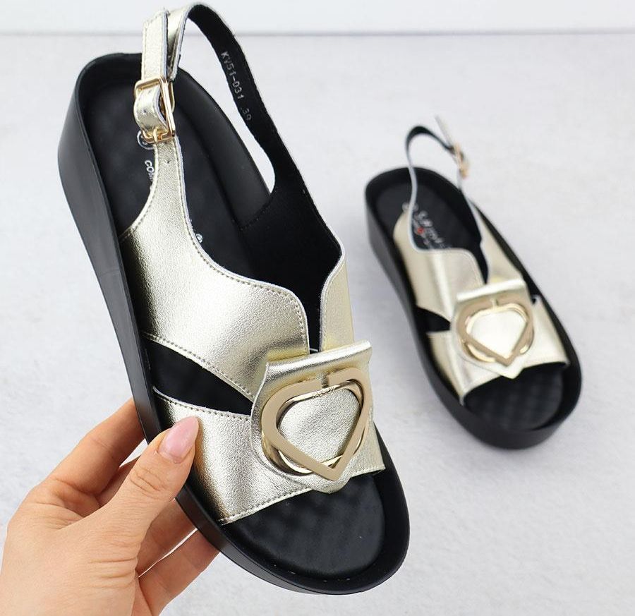 Skórzane sandały damskie na koturnie złote S.Barski KV51-031 Strzelno