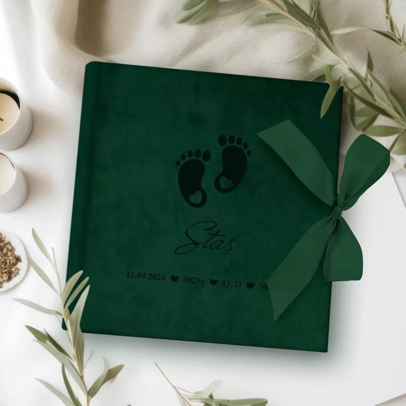 Album na zdjęcia welurowy z grawerem dla dziecka - Stópki Strzyżów