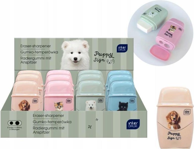 Cechy: Gumka i temperówka w jednym. Temperówka z podwójnym, stalowym ostrzem dla dwóch grubości kredek umożliwia zaostrzenie ołówków i kredek o standardowej, jak i większej średnicy. Wyposażona w wygodne, zamykane wieko i pojemnik na ścinki, który umożliwia bezproblemowe naostrzenie, kiedy w pobliżu nie ma śmietnika. Uwaga, wysyłamy jeden z dostępnych wzorów produktu. Kraj produkcji: PL Producent/osoba odpowiedzialna za bezpieczeństwo produktuINTERDRUK S.A.Łucka 1500-842 Warszawainfo@interdruk.com.pl+48 22 486 60 00