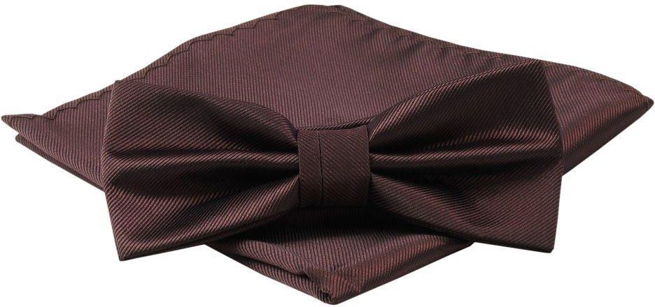 Mucha Męska z Poszetką, Brązowa Jednokolorowa w Drobny Prążek -ALTIES MUALTS0834 Strzyżów