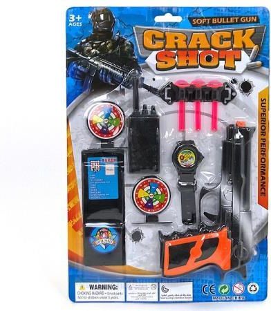Zestaw policyjny na blistrze. Zestaw zawiera : pistolet, krótkofalówke, zegarek, 2x tarcza, 3 x strzałki, ligitymację. Wymiary opakowania : 38,5 x 26 x 2 cm. Wiek : 3+ ....