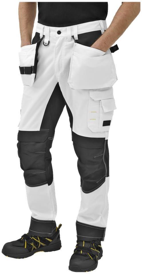 Spodnie robocze z certyfikatem OEKO-TEX, nylonowym wzmocnieniem, wstawkami ze stretchu i wieloma kieszeniami oraz uchwytami.