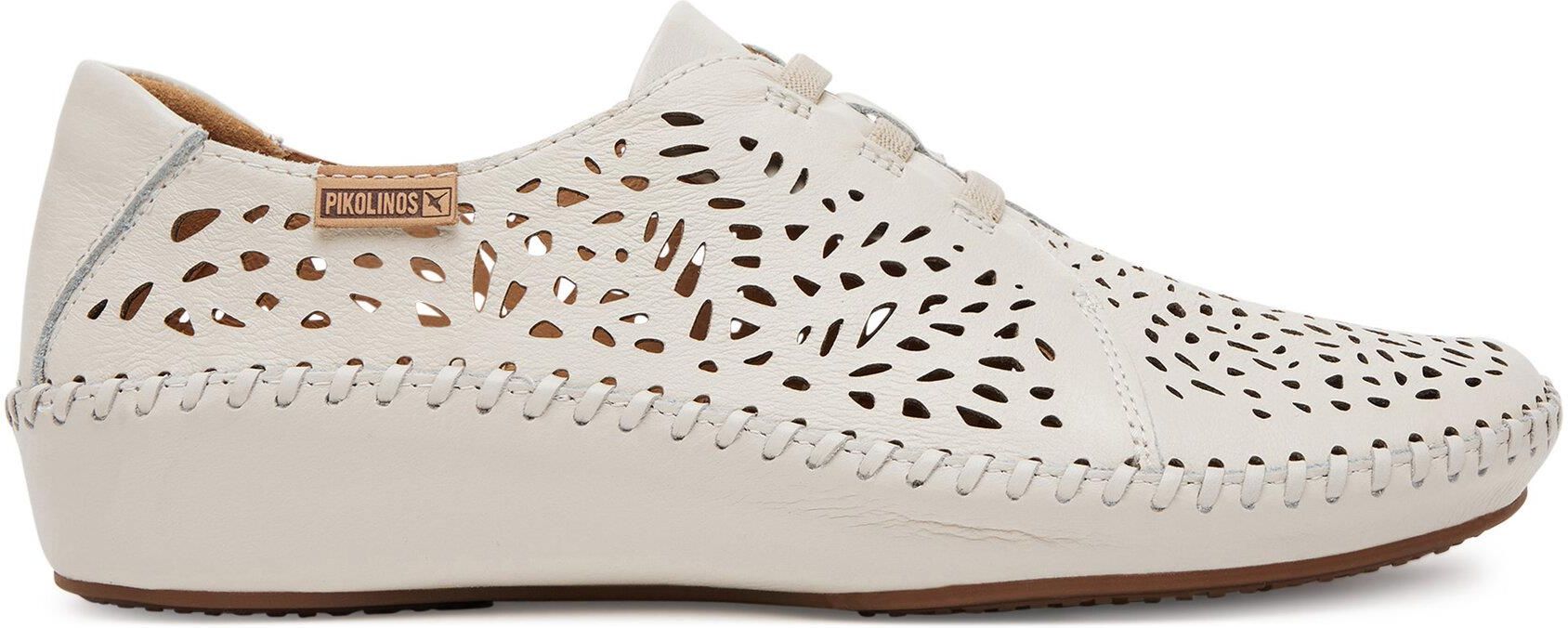Poczuj najwyższy komfort i styl z damskimi półbutami marki Pikolinos! Wykonane z naturalnej licowej skóry, te białe buty to doskonały wybór na każdą okazję. Ich klasyczny, a zarazem nowoczesny design sprawia, że łatwo dopasujesz je do różnych stylizacji. Dodatkowym atutem jest gumowy klin w cholewce, który zapewnia idealne dopasowanie do stopy oraz wygodę noszenia przez cały dzień. Te półbuty to nie tylko modny, ale również praktyczny wybór dla każdej kobiety ceniącej komfort i elegancję. Nie zwlekaj, dodaj je do swojej kolekcji już teraz!