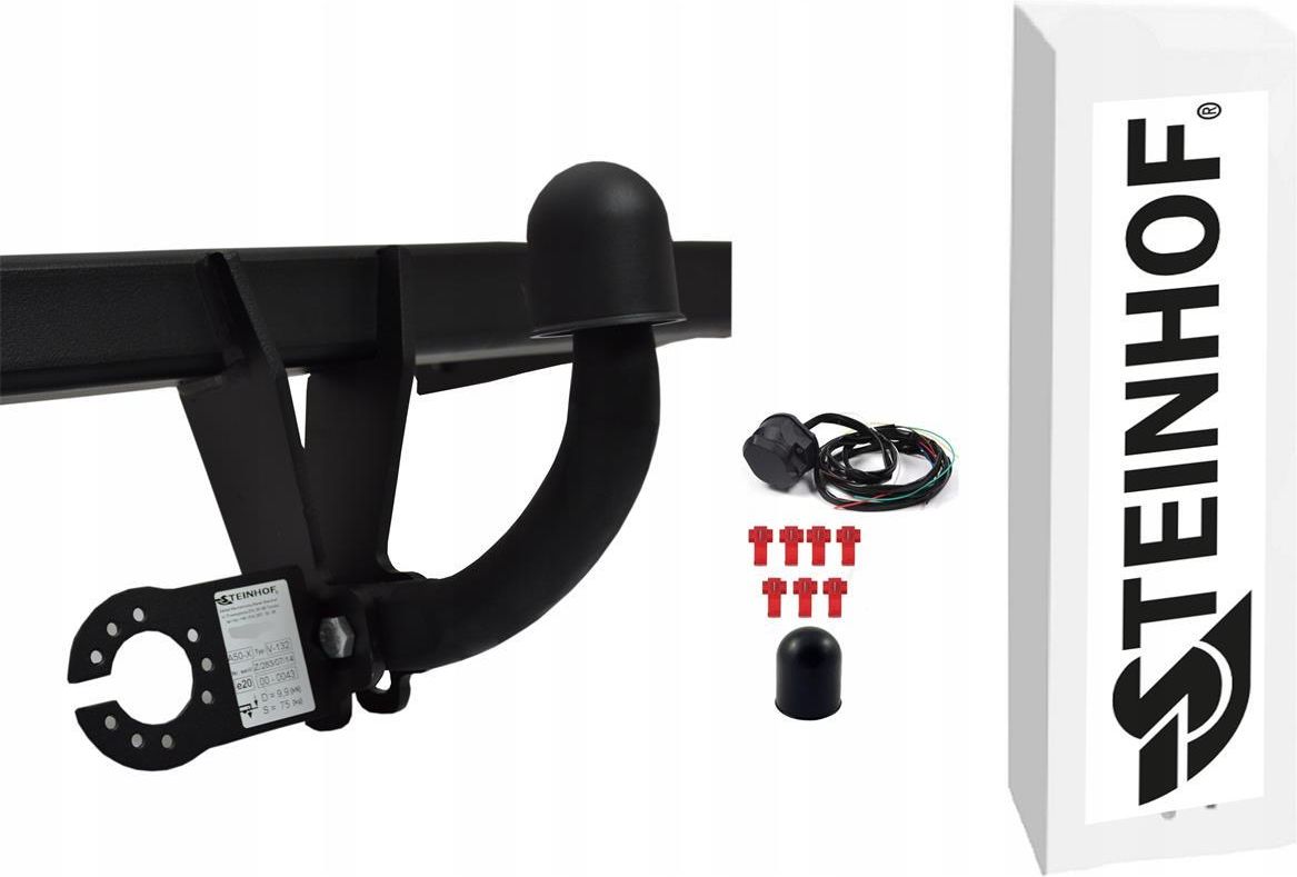 Hak Odkręcany STEINHOF R-093 Dane techniczne Homologacja: e20 Rodzaj kuli: Odkręcana Parametr "D" [kN]: 7,5 Max. uciąg [kg]: 1350 Max. nacisk pionowy [kg]: 75 Hak Odkręcany STEINHOF R-093 pasuje do poniższych aut:Kliknij tutaj aby rozwinąć listę(kliknij markę aby sprawdzić kompatybilne modele) RENAULT RENAULT Megane II 4D [ 2003-2010 ] Wymaga zdjęcia / podcięcia zderzaka: TAK / NIE RENAULT Megane II Grand Tour [ 2003-2009 ] Wymaga zdjęcia / podcięcia zderzaka: TAK / NIE Hak odkręcany STEINHOF to praktyczne i trwałe rozwiązanie dla kierowców, którzy cenią sobie niezawodność i prostotę użytkowania. Jego solidna budowa gwarantuje bezawaryjną pracę, a jednocześnie zapewnia komfort i pewność podczas codziennego użytkowania. Zawsze gotowy do działania – dokładnie wtedy, gdy jest potrzebny. Model odkręcany nie zawiera żadnych mechanizmów ani ruchomych części, dzięki czemu jest całkowicie bezobsługowy i odporny na uszkodzenia. Każdy hak STEINHOF jest projektowany z myślą o konkretnym modelu pojazdu, co zapewnia idealne dopasowanie bez konieczności cięcia lub spawania elementów podwozia. To rozwiązanie doskonale sprawdza się w wielu sytuacjach – od holowania przyczep, przez transport rowerów, aż po montaż dodatkowych akcesoriów. Gdy hak nie jest potrzebny, można go w prosty sposób zdemontować, odkręcając kilka śrub. Zwykle jednak może pozostać zamocowany na stałe, nie przeszkadzając w codziennym użytkowaniu auta. Wszystkie haki holownicze STEINHOF są zabezpieczane trwałą powłoką proszkową, która chroni stal przed korozją i działaniem czynników atmosferycznych. Wykorzystanie wysokiej jakości materiałów gwarantuje bezpieczeństwo, trwałość i pełną niezawodność w każdych warunkach eksploatacji – a przy tym w bardzo atrakcyjnej cenie. Dodatkowo, produkty STEINHOF objęte są 2-letnią gwarancją producenta, co potwierdza ich jakość i dbałość o użytkownika. Co zawiera zestaw Belkę haka idealnie dopasowaną do Twojego auta Kulę odkręcaną Zestaw montażowy (wsporniki, śruby, podkładki, etc.) Osłonkę kuli (kapturek) Homologację - tabliczka znamionowa na belce - wymagana do rejestracji! Podstawka pod gniazdo elektryczne Instrukcja montażu Hak standardowo nie zawiera w zestawie wiązki elektrycznej. Odpowiednio dopasowane zestawy elektryczne znajdziesz poniżej. Producent lub osoba odpowiedzialna GRUPA STEINHOF SPÓŁKA Z OGRANICZONĄ ODPOWIEDZIALNOŚCIĄ Przemysłowa 27A 33-100 Tarnów sekretariat@steinhof.plOstrzeżenia dotyczące bezpieczeństwa: Montaż wyłącznie przez wykwalifikowany warsztat. Nie przekraczać maksymalnego uciągu i nacisku na kulę określonych przez producenta. Przed każdą jazdą sprawdzić mocowanie i stan haka. Nie używać haka z oznakami uszkodzenia lub luzami. Nie modyfikować elementów haka ani mocowań. Regularnie kontrolować momenty dokręcenia i stan połączeń. Używać wyłącznie do holowania pojazdów zgodnych z homologacją.