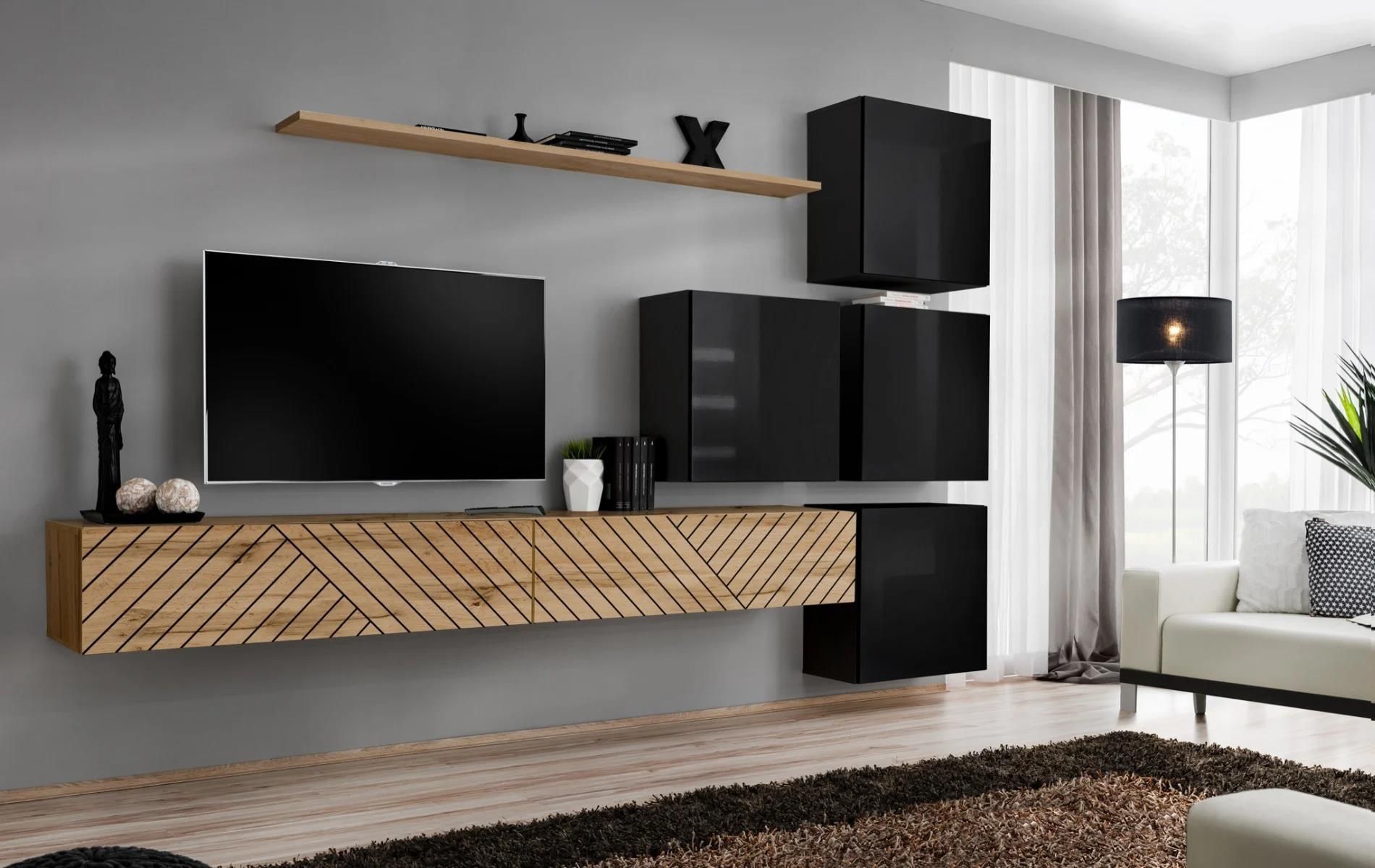 Asm Meble Meblościanka Switch Lamel Ix Dąb Wotan/Czarna Suchań