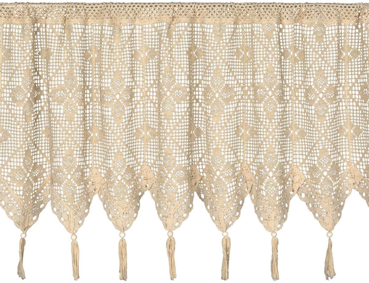 Eurofirany Zazdrostka 60X150 Martha Beżowa Jasna Z Ażurowym Kwiatowym Wzorem Gotowa Na Tunelu Suchań