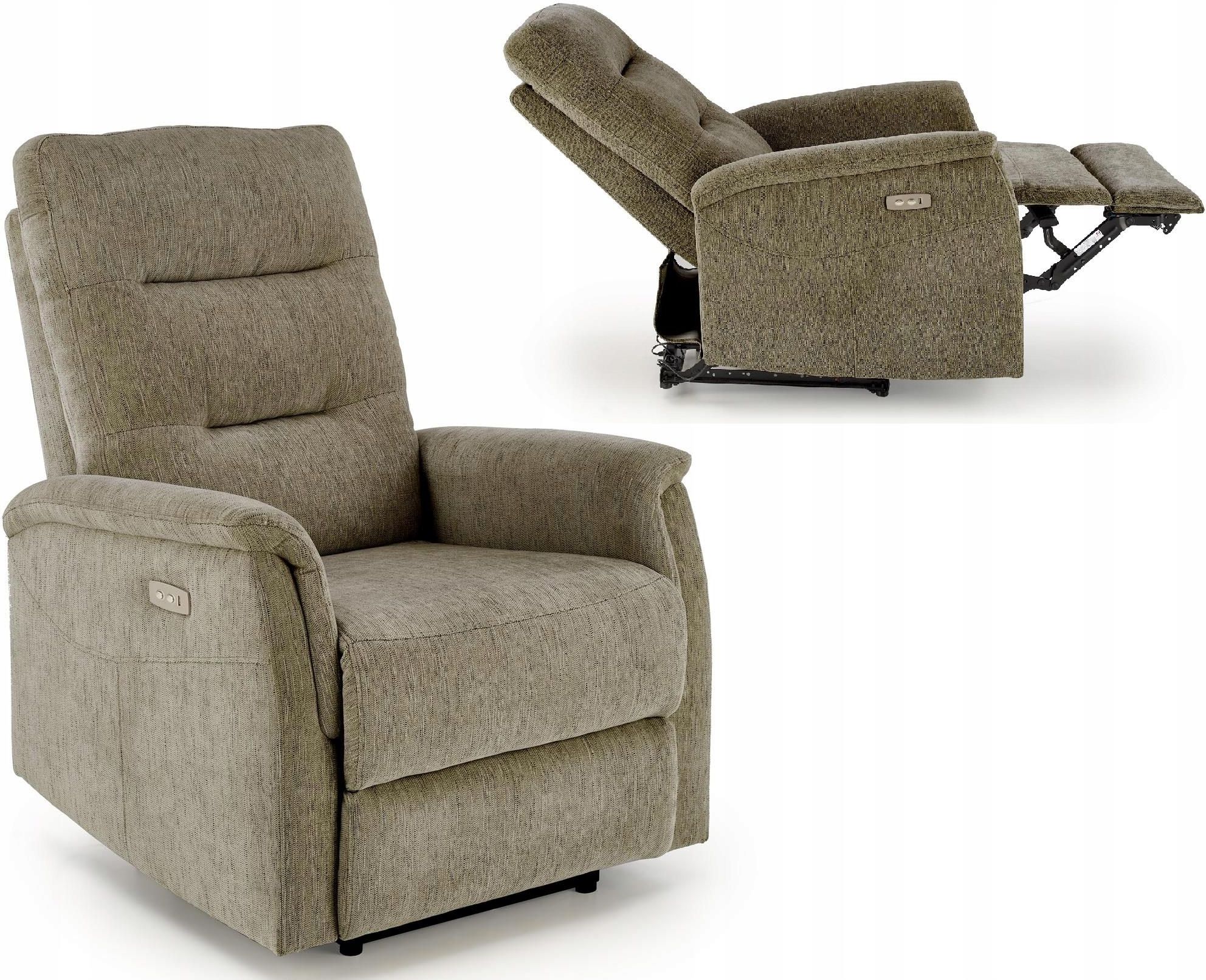 Fotel Wypoczynkowy z Funkcją Elektrycznego Rozkładania USB Oliwkowy Jamal Suchań