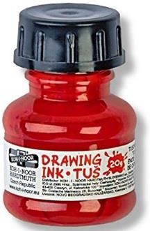 Tusz Drawing Ink Koh-I-Noor, rysunkowy, kreślarski 20 g czerwony Tusz rysunkowy Koh i Noor odznacza się żywym i trwałym kolorem odpornym na światło. Tusz doskonały zarówno do kreślarstwa, jak i rysunku oraz prac plastycznych. Bardzo dobrze i trwale łączy się z podłożem, jednakże w zależności od powierzchni można je korygować np. na kalce poprzez wydrapanie. Tusze kreślarskie Koh i Noor sprawdzają się na różnych powierzchniach takich jak papier, karton czy kalka. Tusz zamknięty w plastikowym pojemniku 20 g z wygodnym kroplomierzem wbudowanym w nakrętkę (plastikowa rurka), który może być również rysikiem. Można go stosować do stalówek rysunkowych, pędzla, patyka do tuszu np. lipowego lub bambusowego. Tusz sprawdzi się do techniki lawowania, można go rozwadniać wodą. Tuszy nie należy używać do piór wiecznych oraz pisaków kreślarskich. Tusz Koh i Noor to jeden z najbardziej rozpoznawalnych i najczęściej wybieranych tuszy szkolnych na rynku. Jest gwarancją jakości w przystępnej cenie. Polecany zarówno do prac szkolnych, projektów plastycznych, jak również kreślarzom i rysownikom. W naszej ofercie tuszy Koh I Noor występują również w kolory: biały, żółty, pomarańczowy, magenta, fioletowy, niebieski, zielony, brązowy, czarny. Tusz czarny posiada doskonałe 100% krycie, pozostałe kolory są transparentne.