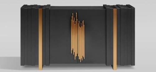 Livin Hill Elegancka Komoda Szeroka Czarna Ze Złotymi Akcentami Stilig 13311 Suchań