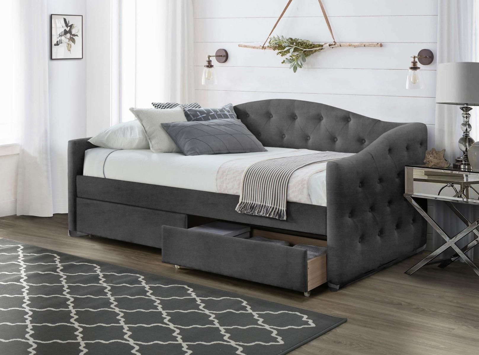 Łóżko Tapicerowane Aloha 90X200 Szare Z Szufladami V-Ch-Aloha-Loz-Popiel Suchań