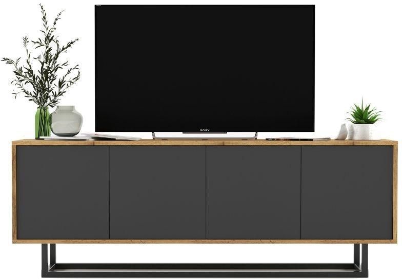 Meble Lindner Komoda Rtv Loft Apollo 150X35X53 Cm Dąb Wotan Grafit Mat 14404 Suchań