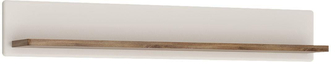 Półka TOLD01 TOLEDO Długa półka z kolekcji Toledo to idealny element do uzupełnienie aranżacji salonu, sypialni czy innego pomieszczenia. Wykonana z trwałego i odpornego laminatu stanie się miejscem na wyeksponowanie dekoracji, lub uporządkowanie książek. Jej nieszablonowa i bestsellerowa kolorystyka, którą tworzy połyskliwa Biel Alpejska i Dąb Stirling, przyciągnie wzrok miłośników nowoczesnych aranżacji. Taka kombinacja zapewni nie tylko optyczne powiększenie niewielkiej ściany, ale przyczyni się do jej całkowitej metamorfozy.