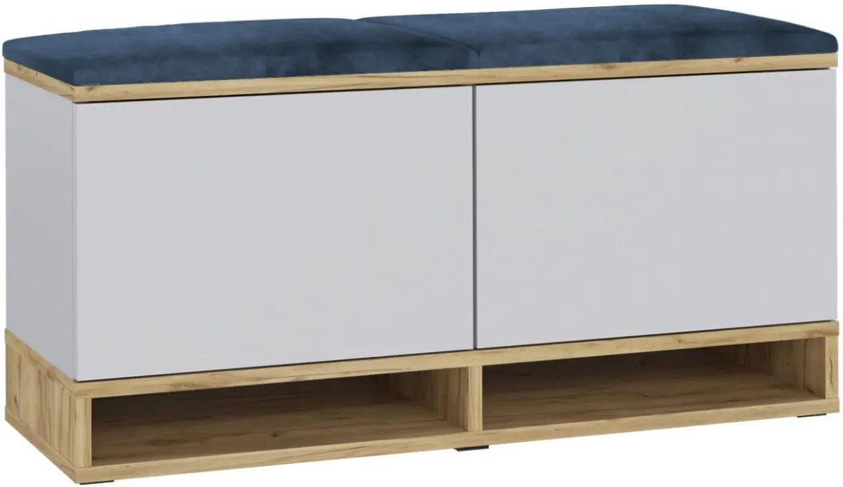 Szafka na buty z siedziskiem DUBAI biała/dąb craft/granatowa