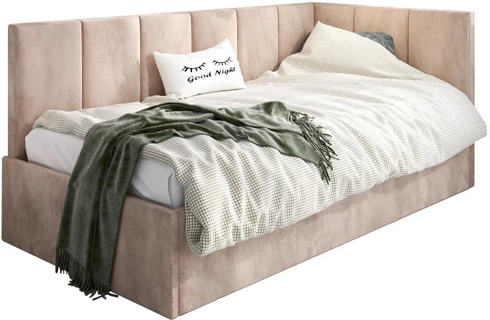 Mkpol Łóżko Młodzieżowe Aura 100X200 Beżowe Z Tapicerowanym Panelem L I Pojemnikiem Na Pościel Suchań