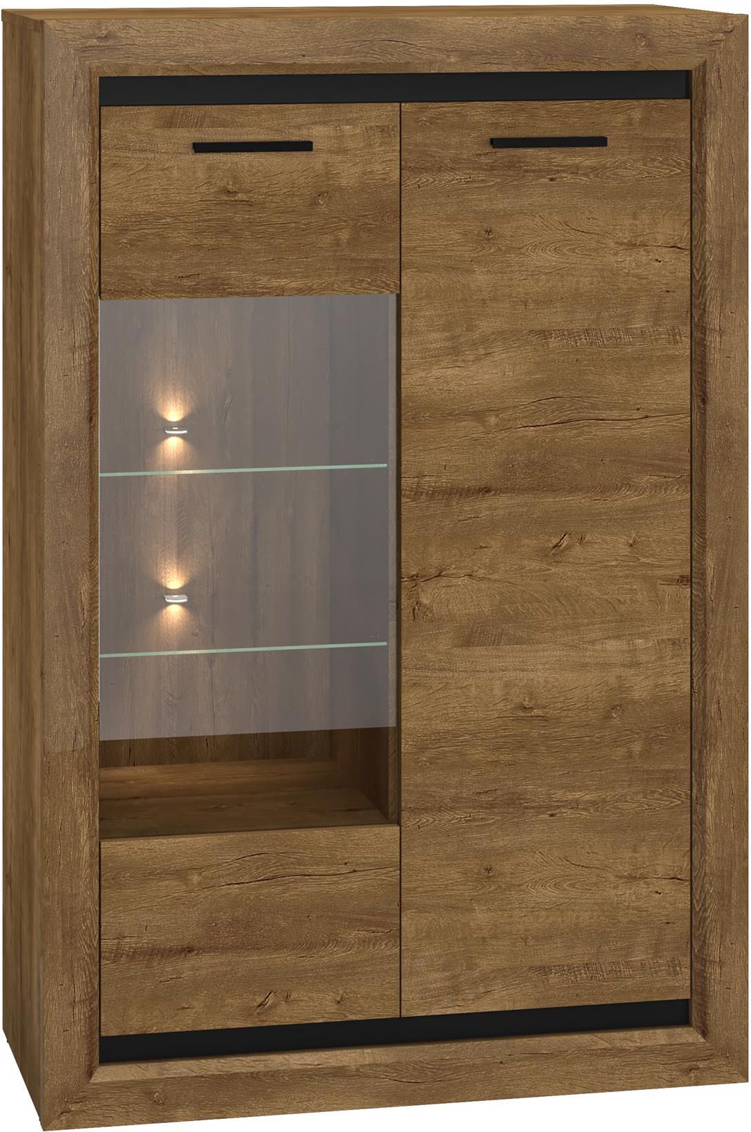 Witryna BALTICA 2601 BALTICA to kolekcja mebli do pokoju dziennego lub biura wykonana z wysokiej klasy płyty laminowanej w bardzo ciepłej kolorystyce z widocznym rysunkiem słojów i wyczuwalną strukturą. Charakterystycznym elementem wyróżniającym meble są wstawki z płyty i uchwyty. Uniwersalna …