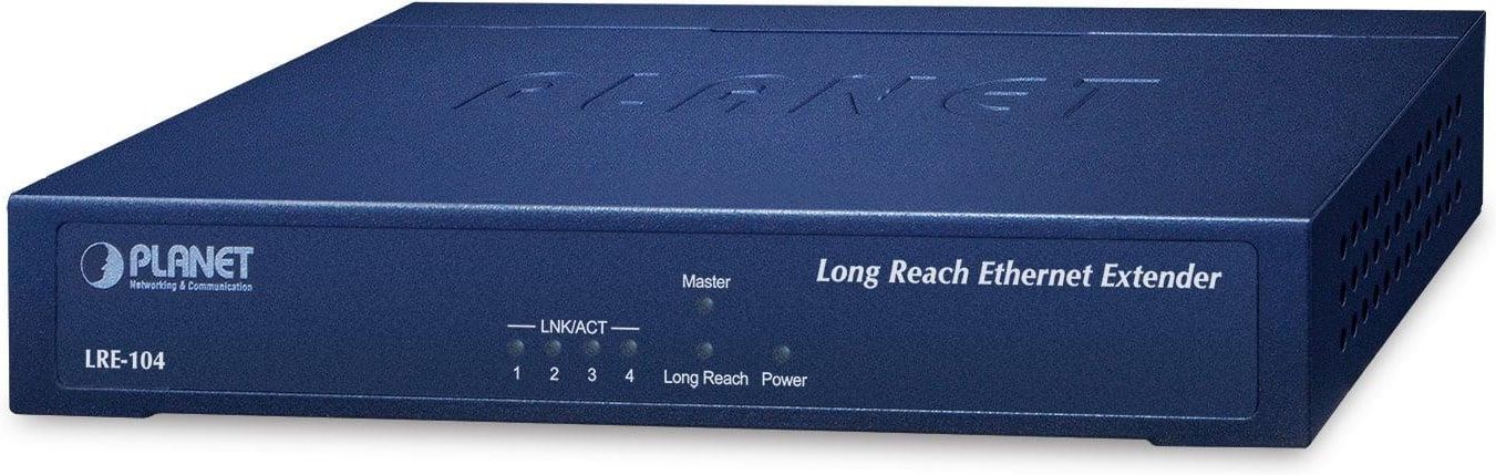 PLANET (LRE-104) Planet LRE-104 4-Port 10/100TX + 1-Port UTP/BNC Long Reach Ethernet Extender (Up to 800 meters UTP cable/1200 meters phone wire/2000 meters coaxial cable, Master/Slave mode DIP switch)