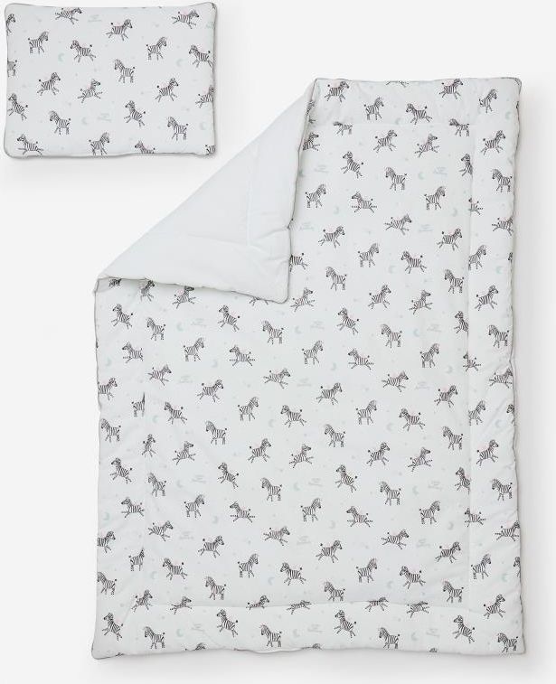 Pościel ZEBRY to gotowy zestaw dziecięcej pościeli przeznaczonej do łóżeczka. W zestawie znajduje się kołderka oraz płaska poduszeczka. Z jednej strony pościeli znajduje się słodki wzór w zebry, a druga strona jest gładka w białym kolorze.